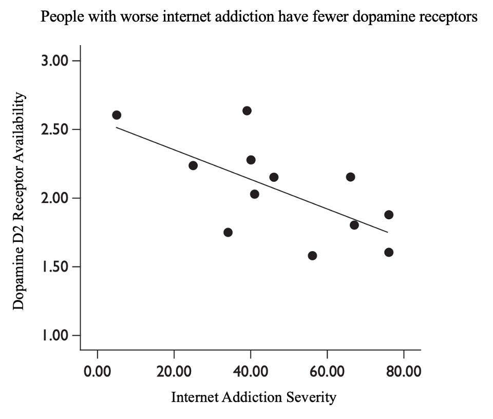 Brain scans of people with internet addiction confirm this. The more severe the addiction, the fewer dopamine receptors remain. The same pattern appears in cocaine, methamphetamine, and alcohol addiction - the substance changes, but the receptor loss looks identical.