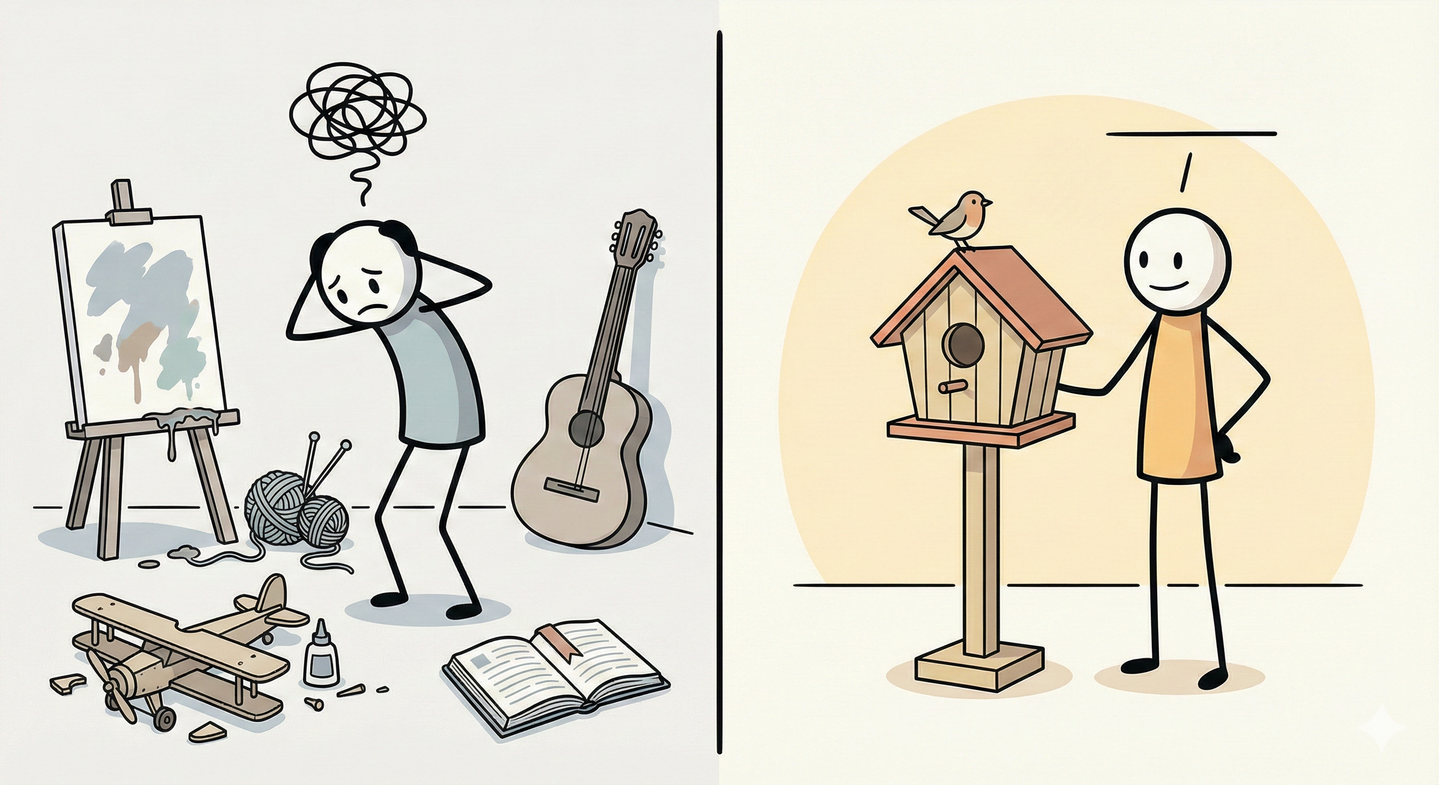 The guitar sits in the corner. The domain you bought expires. The notebook stays blank.